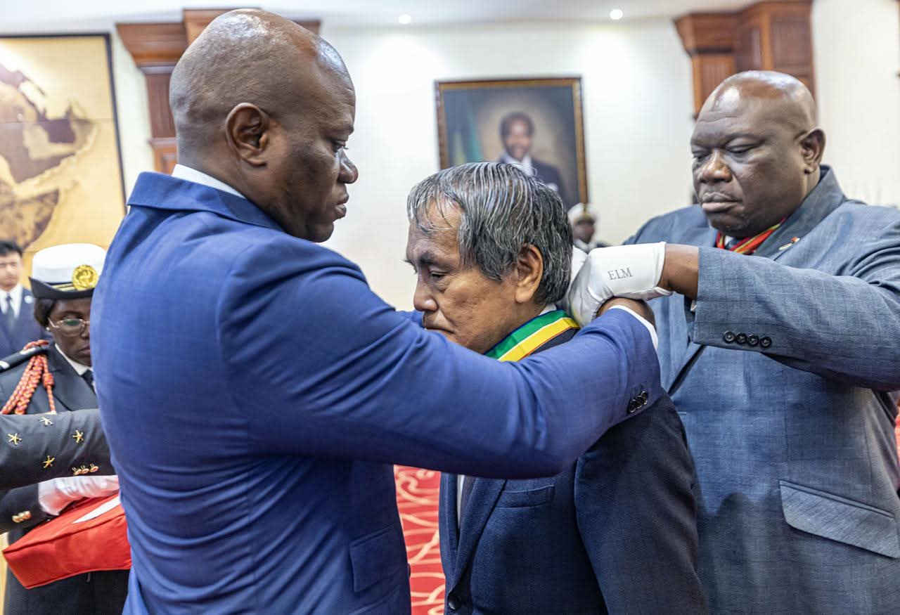 Le lundi 06 octobre 2025, le président de la République, chef de l’État, a, lors d’une cérémonie officielle au Palais Rénovation, honoré deux figures majeures de la coopération internationale : l’ambassadeur du Japon, Shuji Noguchi, et Gilberto Da Piedade Verissimo, président de la Commission de la CEEAC.Tous deux ont été élevés au rang de commandeur dans l’ordre national du Mérite gabonais.