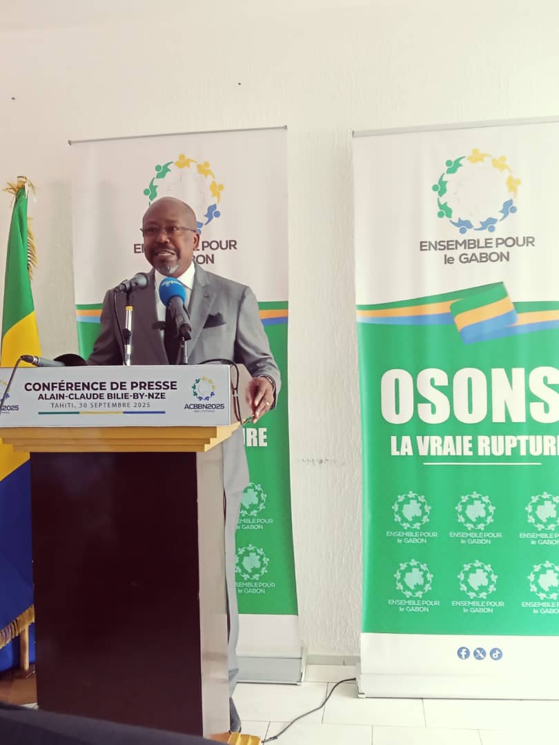 Le président d’Ensemble pour le Gabon (EPG), Alain Claude Bilie-By-Nze, s’est exprimé ce mardi 30 septembre 2025 à l’occasion d’une conférence de presse, dans les locaux de son parti sis au quartier Tahiti. Cette prise de parole qui intervient quelques jours après l’annonce des résultats provisoires du premier tour des élections jumelées du 27 septembre 2025 avait pour but d’exiger l’annulation du scrutin et d’interpeller le président de la République sur les attentes des Gabonais, à savoir des élections crédibles et transparentes.