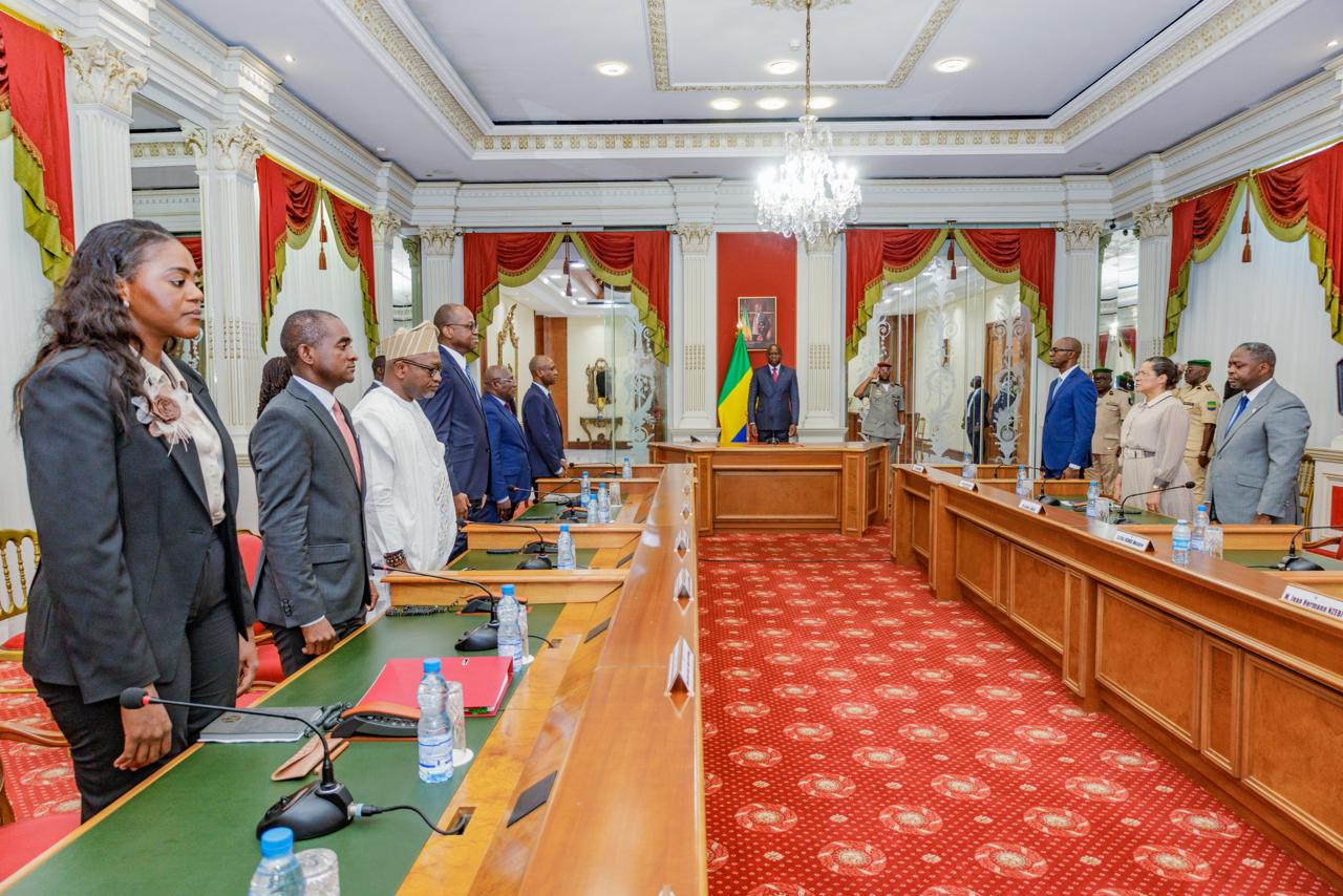Le Président de la République, Chef de l’État, Chef du Gouvernement, Son Excellence Brice Clotaire Oligui Nguema, a reçu ce jour, vendredi 16 janvier 2026, les représentants des Institutions Financières, conduits par Monsieur Dimitri Kevin Ndjebi, Président de l’Association des établissements de crédit opérant au Gabon (APEC), pour un échange consacré aux perspectives économiques du pays.