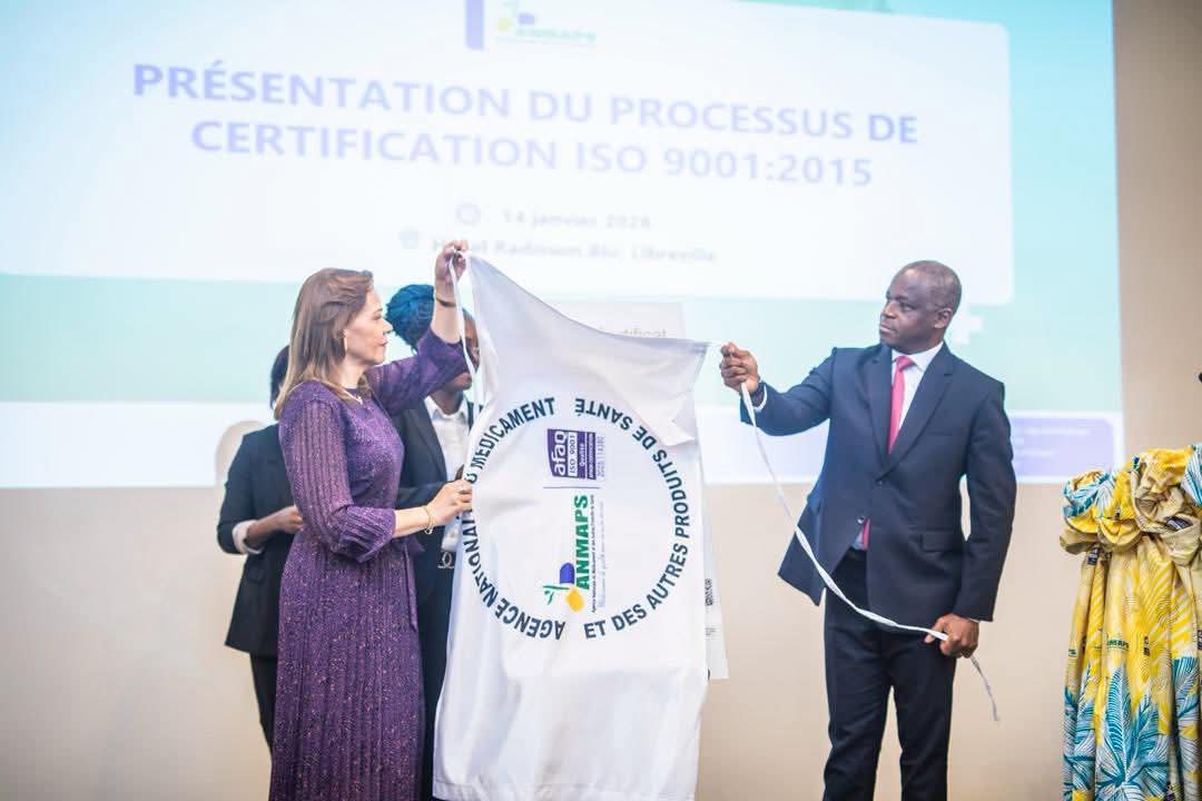 C’est lors d’une cérémonie officielle présidée par le vice-président du gouvernement Hermann Immongaut le 14 janvier 2026 à Libreville que l’Agence nationale du médicament et des autres produits de santé (ANMAPS) a reçu des mains du ministre en charge de la Santé, Pr. Elsa Nkana Joséphine Ayo-Bivigou, la certification ISO 9001/2015. La cérémonie s’est déroulée en présence de plusieurs membres du Gouvernement, des partenaires techniques et financiers, des responsables d’institutions sanitaires et des professionnels de santé.
