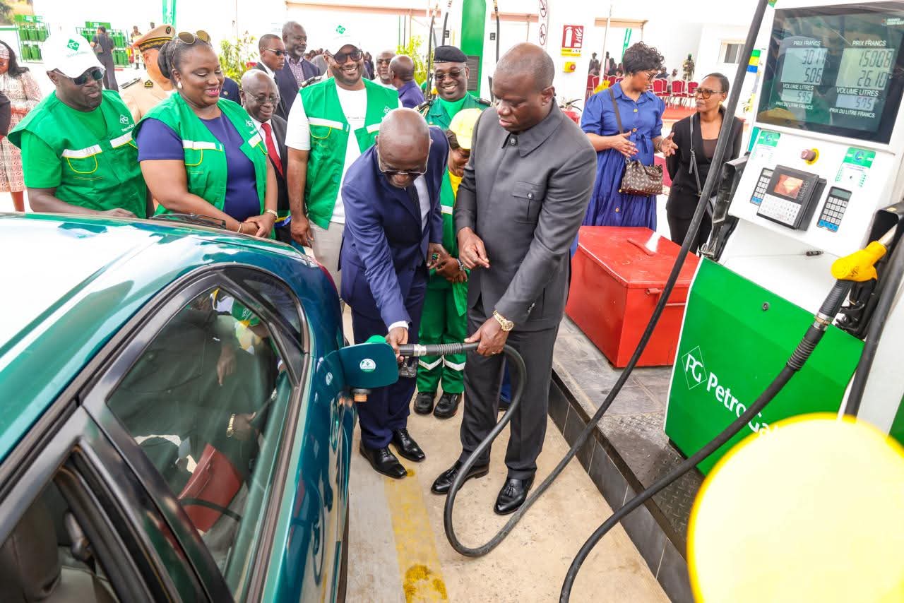 La seconde inauguration à été celle de la station service Petro Gabon de Ngouoni. Cette nouvelle infrastructure est destinée à améliorer l’approvisionnement en carburant dans la région, dynamisant ainsi l’activité économique locale et facilitant la vie quotidienne des habitants. Petro Gabon, acteur majeur de la distribution de produits pétroliers au Gabon, joue un rôle crucial dans la sécurisation de l’approvisionnement énergétique du pays. Ces deux réalisations concrètes illustrent l’engagement du gouvernement en faveur de l’éducation, de l’autonomie énergétique et du développement local.